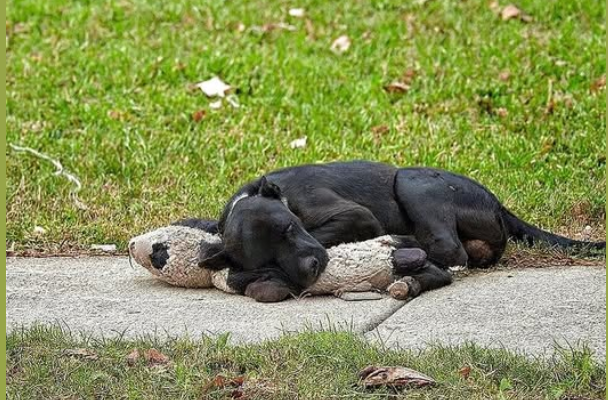 A few days later, the couple noticed the dog was gone. After searching, they found him at the park—lying in the same spot where he once curled up beside his little brother. Only this time, under his head was the baby’s beloved bunny stuffed toy.