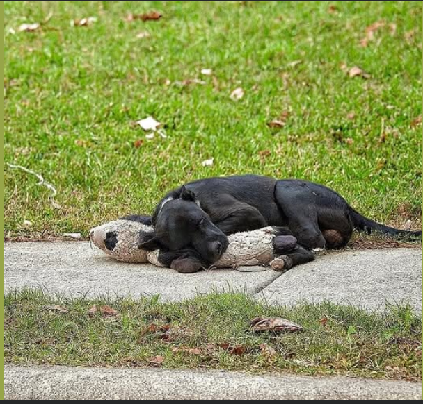 A few days later, the couple noticed the dog was gone. After searching, they found him at the park—lying in the same spot where he once curled up beside his little brother. Only this time, under his head was the baby’s beloved bunny stuffed toy.