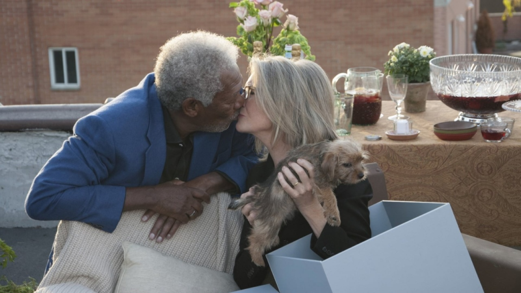 One afternoon, as filming neared its end, Keaton and Freeman stood together on the rooftop set overlooking the city. It was their final scene — Ruth and Alex watching the skyline, knowing that time had taken more than just their youth.